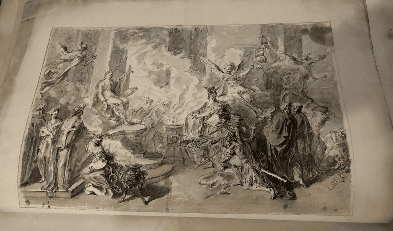 Obscure attribution and subject of 18th century drawing